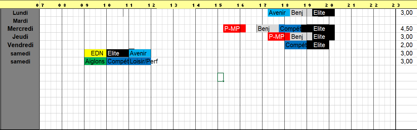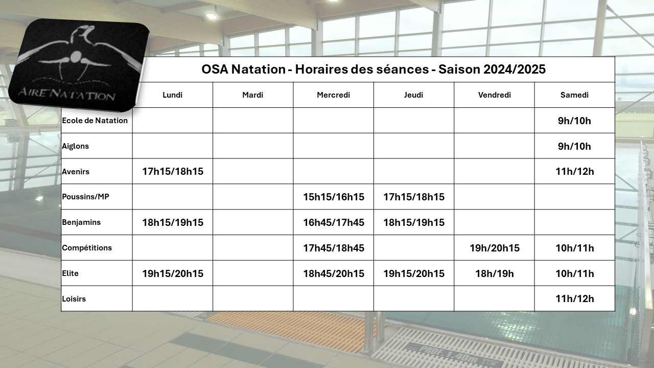 Horaires des entraînements 2024-2025